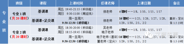 足尖班:针对有一定芭蕾舞基础的学员(学校从4级开始增设,3级下期会适当引入),学习足尖相关知识,由易到难。