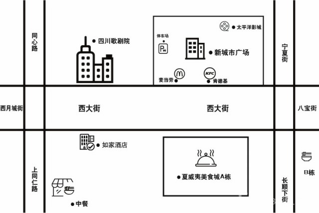 剧院的大门位于西月城街道的一旁,为了避免大家分不清方向,走错街道,所以小薇为大家画了一副简图附上(是不是很贴心吖~)